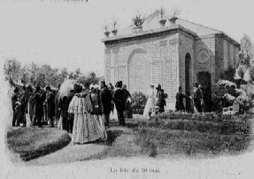 La grille aux fers dorés est ouverte sur la large avenue de Paris qui mène droit au théâtre de Versailles. Appuyé sur l'une des extrémités de La grille, un coquet pavillon se dresse; un large tapis rouge est étendu sur le sable, devant la porte; des fleurs, des roses jonchent le chemin. Sur le seuil, aimable, souriant, très bon, le seigneur de la calme demeure reçoit les amis qu'il convia. Un orchestre, dissimulé dans un bosquet, murmure une douce musique.