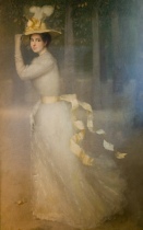 Une sonnette discrète réclame le silence. M. Léon Delafosse se met au piano et exécute avec le talent qu'on lui sait une gavotte de Bach, une fantaisie de Chopin, une barcarolle de Rubinstein. M. Yann Nibor lui succède; il dit les Anciens, l’Ouragan, les Quatre frères et l’Ella, et cette poésie simple, franche, vigoureuse, émeut profondément tous les délicats qui l'écoutent. Mais voici Mlle Reichenberg, toute gracieuse, habillée de rose pâle et coiffée d'un large chapeau blanc que couvrent de grandes plumes roses. On lui fait fête, car elle lit à ravir le Menuet de François Coppée, la Mandoline de Verlaine, le madrigal de M. Robert de Montesquiou et la Dormeuse de Mme Desbordes-Valmore.