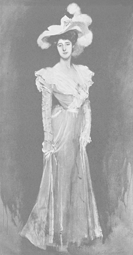 Vous verrez en ce sens, prochainement, les portraits de la grande-duchesse de Mecklembourg et de la comtesse de Noailles. La grande-duchesse, debout simplement vêtue d'une robe de satin paille et décolletée, laisse tomber ses bras sous le poids d'une fleur: mais je ne puis dire l'éclat de ses épaules charnues et roses, le port charmant de la tête heureuse; le modelé des bras, cette chair nacrée et spéciale dont Prud'hon a gratifié son impératrice Joséphine, puis quelle emprise d'aristocratie! Oh! rien d'altier ni d'insolent, mais la magnificence simplement exprimée des races du Nord, si laiteuses et si blondes.